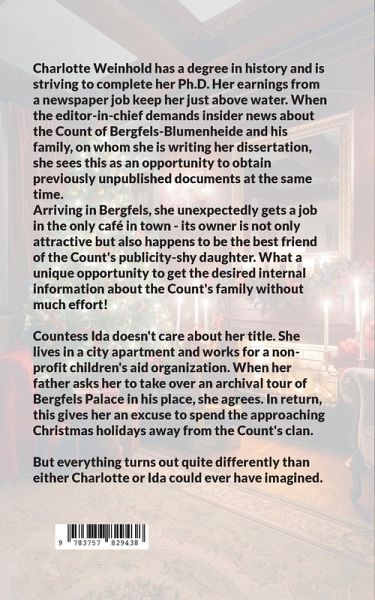 Charlotte Weinhold has a degree in history and is striving to complete her Ph.D. Her earnings from a newspaper job keep her just above water. When the editor-in-chief demands insider news about the Count of Bergfels-Blumenheide and his family, on whom she is writing her dissertation, she sees this as an opportunity to obtain previously unpublished documents at the same time.Arriving in Bergfels, she unexpectedly gets a job in the only café in town - its owner is not only attractive but also happens to be the best friend of the Count's publicity-shy daughter. What a unique opportunity to get the desired internal information about the Count's family without much effort!Countess Ida doesn't care about her title. She lives in a city apartment and works for a non-profit children's aid organization. When her father asks her to take over an archival tour of Bergfels Palace in his place, she agrees. In return, this gives her an excuse to spend the approaching Christmas holidays away fromthe Count's clan.But everything turns out quite differently than either Charlotte or Ida could ever have imagined.