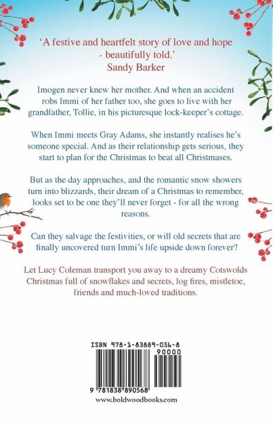'A festive and heartfelt story of love and hope - beautifully told.' Sandy Barker Join us for Christmas in the Cotswolds in this perfect festive escape, from the bestselling Lucy Coleman. Imogen Tolliman never knew her mother. And when an accident robs Immi of her father too, she goes to live with her grandfather, Tollie, in his picturesque lock-keeper's cottage by the Aysbury marina. Tollie is the star of the Santa Ahoy Special each Christmas - a festive boat ride along the canal that enthralls both children and adults alike. And as Immi grows up, she starts to appreciate the magical community she is lucky enough to live in. When Immi meets Gray Adams, she instantly realises he's someone special. And as their relationship gets serious, they start to plan for the Christmas to beat all Christmases. But as the day approaches, and the romantic snow showers turn into blizzards, their dream of a Christmas to remember, looks set to be one they'll never forget - for all the wrong reasons. Can they salvage the festivities, or will old secrets that are finally uncovered turn Immi's life upside down forever? Let Lucy Coleman transport you away to a dreamy Cotswolds Christmas full of snowflakes and secrets, log fires, mistletoe, friends and much-loved traditions. Perfect for all fans of Trisha Ashley, Holly Martin and Sue Moorcroft.