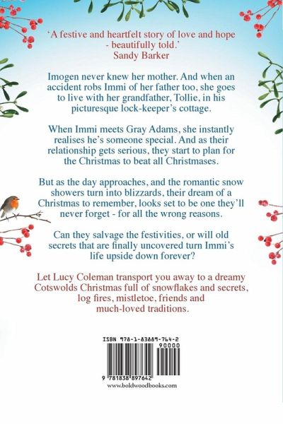 'A festive and heartfelt story of love and hope - beautifully told.' Sandy Barker Join us for Christmas in the Cotswolds in this perfect festive escape, from the bestselling Lucy Coleman. Imogen Tolliman never knew her mother. And when an accident robs Immi of her father too, she goes to live with her grandfather, Tollie, in his picturesque lock-keeper's cottage by the Aysbury marina. Tollie is the star of the Santa Ahoy Special each Christmas - a festive boat ride along the canal that enthralls both children and adults alike. And as Immi grows up, she starts to appreciate the magical community she is lucky enough to live in. When Immi meets Gray Adams, she instantly realises he's someone special. And as their relationship gets serious, they start to plan for the Christmas to beat all Christmases. But as the day approaches, and the romantic snow showers turn into blizzards, their dream of a Christmas to remember, looks set to be one they'll never forget - for all the wrong reasons. Can they salvage the festivities, or will old secrets that are finally uncovered turn Immi's life upside down forever? Let Lucy Coleman transport you away to a dreamy Cotswolds Christmas full of snowflakes and secrets, log fires, mistletoe, friends and much-loved traditions. Perfect for all fans of Trisha Ashley, Holly Martin and Sue Moorcroft.