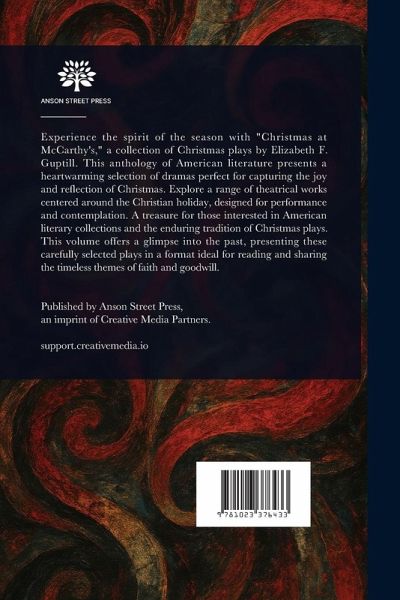 Experience the spirit of the season with "Christmas at McCarthy's," a collection of Christmas plays by Elizabeth F. Guptill. This anthology of American literature presents a heartwarming selection of dramas perfect for capturing the joy and reflection of Christmas. Explore a range of theatrical works centered around the Christian holiday, designed for performance and contemplation. A treasure for those interested in American literary collections and the enduring tradition of Christmas plays. This volume offers a glimpse into the past, presenting these carefully selected plays in a format ideal for reading and sharing the timeless themes of faith and goodwill. This work has been selected by scholars as being culturally important, and is part of the knowledge base of civilization as we know it. This work is in the public domain in the United States of America, and possibly other nations. Within the United States, you may freely copy and distribute this work, as no entity (individual or corporate) has a copyright on the body of the work. Scholars believe, and we concur, that this work is important enough to be preserved, reproduced, and made generally available to the public. We appreciate your support of the preservation process, and thank you for being an important part of keeping this knowledge alive and relevant.