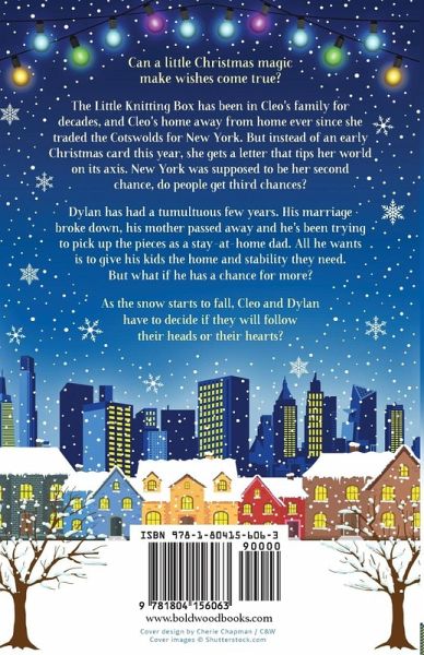 Perfect for fans of Sarah Morgan, Jessica Redland and Kate Forster. The Little Knitting Box has been in Cleo's family for nearly four decades, and Cleo's to manage for four years - ever since she arrived in New York, fresh off the plane from the Cotswolds. But instead of an early Christmas card in the mail this year, she gets a letter that tips her world on its axis. New York was supposed to be her second chance, do people get third chances? Dylan has had a tumultuous few years. His marriage broke down, his mother passed away and he's been trying to pick up the pieces as a stay-at-home dad. All he wants this Christmas is to give his kids the home and stability they need. But when he meets Cleo, he begins to see it's not always so easy to move on, especially when his ex seems determined to win him back. When the snow starts to fall, both Cleo and Dylan realise life is rarely black and white, and both have choices to make. Will Dylan follow his heart or his head? And will Cleo ever allow herself to be a part of another family when her own fell apart at the seams? Full of snow, love and the true meaning of Christmas, this novel will have you hooked until the final page.