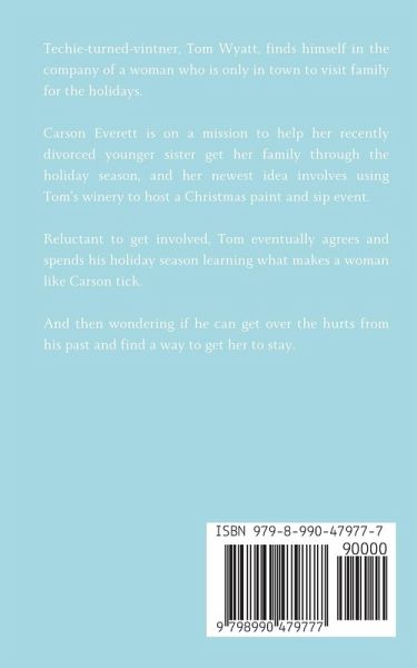 Two people with different lives. One small-town Christmas. Can the thing they create together survive real choices? Or will they be left with only holiday memories? Carson Everett is excellent at planning parties and swallowing panic-inducing emails from her perfectionist boss. But she's terrible at trusting her heart. Heading north for her sister's first Christmas as a single mom, she expects messy snow, play-filled mornings, and zero cell reception - not a rumpled-yet-riveting winery owner who saves her from disaster while smelling like maple and cinnamon. Tom Wyatt bought Whispering Hills vineyard to escape the noise and chaos of the city. It was a great plan. Until she appears - bright, messy, exhausting, and brilliant. She brings people, laughter, and fun into his winery and his life, making him wonder if he can be someone who can hold onto that. Asking her to stay risks everything: the peace he protects and the heartbreak he thought he'd dodged. Between a last-minute paint-and-sip, steamy stolen moments, and a boss throwing the word 'fired' around in all caps, Carson must decide: go back to the safety of the life she knows, or stay and try the messier, riskier thing called love?