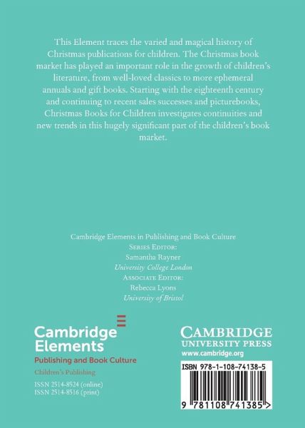 The Christmas book market has played an important role in the growth of children's literature. Starting with the eighteenth century and continuing to recent sales successes and picturebooks, Christmas Books for Children investigates continuities and new trends in this hugely significant part of the children's book market.