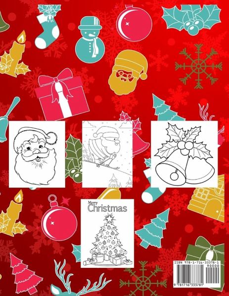 ¿ Let your child explore and practice the world of coloring with this amazing book . This book is the perfect tool to keep your little one/s busy and to capture his attention . Coloring, they will be able to spend their winter holiday in the spirit of the Christmas . ¿Get this perfect gift for the little ones and they will love you more ! About this book : ¿ Contains 30 large illustrations,easy to color that will make children relax ,unwind,be taken by the wave and be part of the Christmas story . ¿ Each coloring book is printed on a separate page,to avoid bleed through ¿ Suitable for any kind of colors(markers,gel pens,water colors,coloring pencils etc). ¿ The design range of the pages is from simple to just a little bit more complex,depending on the age or skill level . ¿ 8.5"x11" format ,professional quality design . ¿ 65 pages This coloring book could also be a very nice gift,not only for your child,but for your nephew/niece ,little friends,kids of the neighbours and so on . ¿ In the end ,Santa Claus has to come to everyone,no matter what! ¿