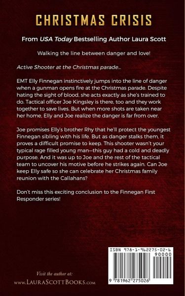From USA Today Bestselling Author Laura Scott Walking the line between danger and love! Active Shooter at the Christmas parade... EMT Elly Finnegan instinctively jumps into the line of danger when a gunman opens fire at the Christmas parade. Despite hating the sight of blood, she acts exactly as she's trained to do. Tactical officer Joe Kingsley is there, too and they work together to save lives. But when more shots are taken near her home, Elly and Joe realize the danger is far from over. Joe promises Elly's brother Rhy that he'll protect the youngest Finnegan sibling with his life. But as danger stalks them, it proves a difficult promise to keep. This shooter wasn't your typical rage filled young man-this guy had a cold and deadly purpose. And it was up to Joe and the rest of the tactical team to uncover his motive before he strikes again. Can Joe keep Elly safe so she can celebrate her Christmas family reunion with the Callahans?