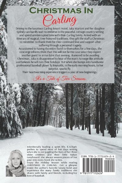 Driving to the luxurious Carling Resort Hotel, Julia Mariani and her daughter Sydney can hardly wait to immerse in the peaceful, cottage-country setting and spend uninterrupted time with their adoptive Carling Family. Armed with an itinerary of magical, time-honored traditions, they gift the staff a Christmas to remember to thank them for their continued love and support after suffering through a personal tragedy. Accustomed to having the entire hotel to themselves for a few days, the concierge informs them that this will not be the case since they expect another guest to arrive later that evening. Rumored to be avoiding Christmas, Julia is disappointed to hear of the man's Scrooge-like attitude and believes he will ruin their holidays. But when she bumps into handsome professional baseball player Ty Reynolds, in the early morning hours, to her surprise, sparks fly. Their heartwarming experience triggers a year of new beginnings. It's a Tale of Two Seasons.