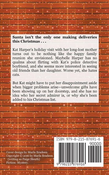 Santa isn't the only one making deliveries this Christmas . . . Kat Harper's holiday visit with her long-lost mother turns out to be nothing like the happy family reunion she envisioned. Maybelle Harper has no qualms about flirting with Kat's police detective boyfriend, and she seems more interested in seeing old friends than her daughter. Worse yet, she hates cats. But Kat might have to put her disappointment aside when bigger problems arise-unwelcome gifts have been showing up on her doorstep, and she has no idea who her secret admirer is, or why she's been added to his Christmas list. All of the Cozy Cat Caper Mystery books can be enjoyed as standalones but will be better appreciated as part of the series. The books are light, fun cozy mysteries featuring an animal-loving female amateur sleuth, lovable and not-so-lovable quirky characters, and a page-turning mystery that needs solving. None of the books include cliffhangers, bad language, or graphic scenes.