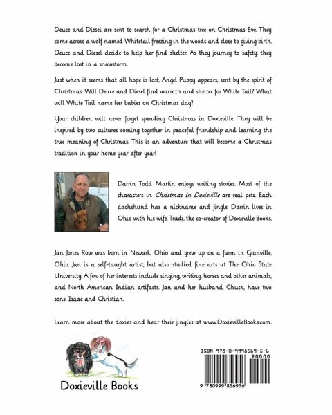 Deuce and Diesel are sent to search for a Christmas tree on Christmas Eve. They come across a wolf named Whitetail freezing in the woods and close to giving birth. Deuce and Diesel decide to help her find shelter. As they journey to safety, they become lost in a snowstorm. Just when it seems that all hope is lost, Angel Puppy appears, sent by the spirit of Christmas. Will Deuce and Diesel find warmth and shelter for White Tail? What will White Tail name her babies on Christmas day? Your children will never forget spending Christmas in Doxieville. They will be inspired by two cultures coming…mehr