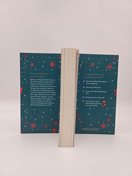 Was ist romantischer als die Weihnachtszeit? Egal wo, auf der ganzen Welt knistert es. Jede Geschichte in diesem Adventskalender verzaubert mit einem wunderbar weihnachtlichen Setting. Denn die große Liebe findet man überall: beim Spaziergang über den verschneiten Adventsmarkt in Straßburg, beim eisigen Winterschwimmen in Wales oder am Strand in Brasilien unter der Weihnachtspalme. Hinter jedem Türchen wartet eine exklusive, wunderschön romantische Kurzgeschichte darauf, die Vorweihnachtszeit zu versüßen!