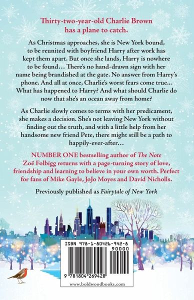 New from the NUMBER ONE bestselling author of The Note. 'A wonderful read that's got everything - romance, suspense, a New York Christmas setting and an unputdownable plot.' Samantha Tonge Thirty-two-year-old Charlie Brown has a plane to catch. As Christmas approaches, she is New York bound, to be reunited with boyfriend Harry after work has kept them apart. But once she lands, Harry is nowhere to be found... There's no hand-drawn sign with her name being brandished at the gate. No answer from Harry's phone. And all at once, Charlie's worst fears come true. What has happened to Harry? And what should Charlie do now that she's an ocean away from home? As Charlie slowly comes to terms with her predicament, she makes a decision. She's not leaving New York without finding out the truth, and with a little help from her handsome new friend Pete, there might still be a path to happily-ever-after... Bestseller Zoë Folbigg returns with a page-turning story of love, friendship and learning to believe in your own worth. Perfect for fans of Mike Gayle, JoJo Moyes and David Nicholls. Praise for Zoë Folbigg: 'The Three Loves of Sebastian Cooper is a cleverly constructed, brilliantly insightful book with a glorious cast of characters. You'll be racing through the final chapters!' Paige Toon 'A beautifully-written, perfectly-crafted novel about love, loss and family that kept me on the edge of my seat until the very end. I love how we meet the entire cast of characters (some of whom you'll love, others you'll hate!) in the present and then weave back in time to discover their connection to the infamous Sebastian Cooper. Pacy, evocative, intriguing and complex - I loved it! Lorraine Brown 'Folbigg's beautiful tale of love and loss owned my heart from page one. Riveting and touching with an intriguing cast of characters from Sebastian Cooper's past and present, this gorgeous story is a must-read. Highly recommend!' Jacquelyn Middleton 'Zoë Folbigg's new novel, The Three Lives of Sebastian Cooper is a brilliant, warm-hearted take on the complexities of love, and the messiness and joy of family life.' Ian Critchley, book reviewer 'The Night We Met will warm and break your heart in equal measure, and make you laugh out loud and sob quietly. A lovely gem.' Heat 'Bestselling author Zoë works her magic again in this lovely tale' Now! on The Distance