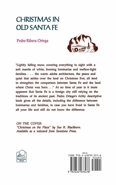 The special customs and traditions of the Christmas season in Santa Fe, New Mexico are carefully and clearly explained in this book that has become a classic. Lightly falling snow, covering everything in sight with a soft mantle of white, burning luminarias and mellow-light farolitos, the warm adobe architecture, the peace and quiet that settles over the land on Christmas Eve, all tend to strengthen the comparison between Santa Fe and the land where Christ was born. At no time of year is it more apparent that Santa Fe, New Mexico is a foreign city still relying on the traditions of the past. Pedro Ribera Ortega's richly descriptive book gives all the details, including the difference between luminarias and farolitos, in case you have lived in Santa Fe all your life and still do not know the difference.