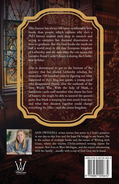 Ellie Sawyer has always felt more comfortable with books than people, which explains why she's a PhD history student neck deep in research and trying to complete her doctoral dissertation in time to graduate. But the final books she needs are half a world away in the tiny European kingdom of Lethersby, and the only time she can access the secretive Royal Castle Library is during the Christmas holiday. Ellie is determined to get to the bottom of the mystery that has eluded Lethersby scholars for more than 100 hundred years by figuring out what happened to their long-lost queen, a young royal who disappeared shortly after the outbreak of the First World War. With the help of Mark, a handsome castle staff member who shares her love of history, she might be able to unravel the queen's story. But Mark is keeping his own secret from her, and what they discover together could change everything for Ellie-and the entire kingdom.