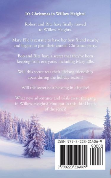It's Christmas in Willow Heights! Robert and Rita have finally moved to Willow Heights. Mary Elle is ecstatic to have her best friend nearby and begins to plan their annual Christmas party. Bob and Rita have a secret they've been keeping from everyone, including Mary Elle. Will this secret tear their lifelong friendship apart during the holiday season? Will the secret be a blessing in disguise? What new adventures and trials await the gang in Willow Heights? Find out in this third book of the series!
