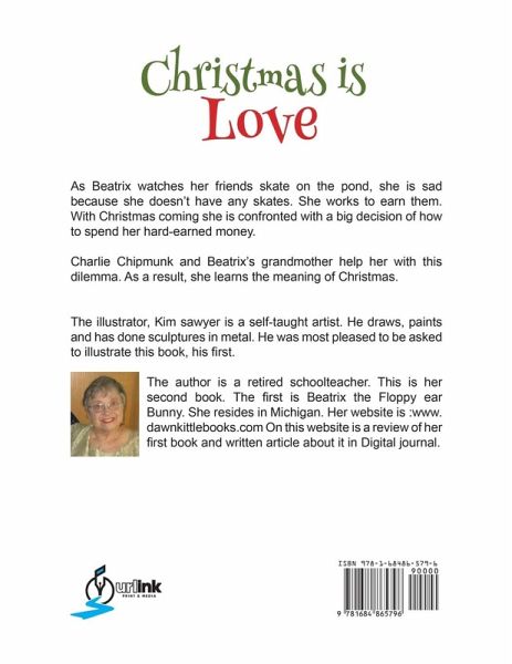 As Beatrix watches her friends skate on the pond, she is sad because she doesn't have any skates. She works to earn them. With Christmas coming she is confronted with a big decision of how to spend her hard-earned money. Charlie Chipmunk and Beatrix's grandmother help her with this dilemma. As a result, she learns the meaning of Christmas. The illustrator, Kim sawyer is a self-taught artist. He draws, paints and has done sculptures in metal. He was most pleased to be asked to illustrate this book, his first.