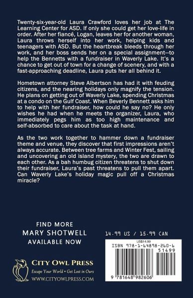Laura Crawford, a 26-year-old dedicated to helping children with autism, is still reeling from her fiancé Logan’s sudden departure. When her boss sends her to Waverly Lake to help organize a fundraiser, Laura sees it as a chance to escape and refocus. Steve Albertson, a hometown attorney tired of town feuds, plans to spend Christmas away from Waverly Lake. But when Beverly Bennett asks him to help with the fundraiser, he reluctantly agrees. He never expected his biggest challenge to be Laura, who thinks he’s too self-absorbed to care. As they work together, their initial animosity melts away amidst tree farms, Winter Fest, and a mysterious island tale. But with a bah humbug local threatening to shut down the event, and Laura’s painful past resurfacing, their budding romance is at risk. Can Waverly Lake’s Christmas magic create a miracle that brings them together just in time for the holidays? If you love holiday romance, second chances, and small-town charm, don’t miss this uplifting Christmas story!