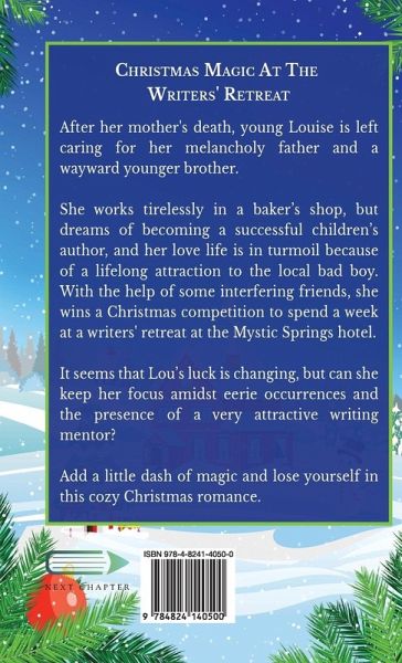 After her mother's death, young Louise is left caring for her melancholy father and a wayward younger brother. She works tirelessly in a baker's shop, but dreams of becoming a successful children's author, and her love life is in turmoil because of a lifelong attraction to the local bad boy. With the help of some interfering friends, she wins a Christmas competition to spend a week at a writers' retreat at the Mystic Springs hotel. It seems that Lou's luck is changing, but can she keep her focus amidst eerie occurrences and the presence of a very attractive writing mentor? Add a little dash of magic and lose yourself in this cozy Christmas romance.