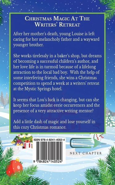 After her mother's death, young Louise is left caring for her melancholy father and a wayward younger brother. She works tirelessly in a baker's shop, but dreams of becoming a successful children's author, and her love life is in turmoil because of a lifelong attraction to the local bad boy. With the help of some interfering friends, she wins a Christmas competition to spend a week at a writers' retreat at the Mystic Springs hotel. It seems that Lou's luck is changing, but can she keep her focus amidst eerie occurrences and the presence of a very attractive writing mentor? Add a little dash of magic and lose yourself in this cozy Christmas romance.