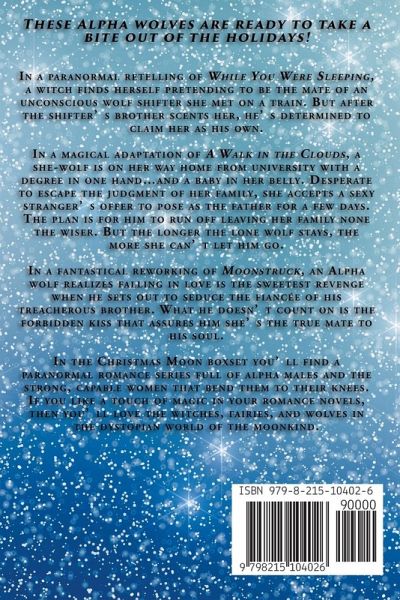 These Alpha wolves are ready to take a bite out of the holidays! In a paranormal retelling of While You Were Sleeping, a witch finds herself pretending to be the mate of an unconscious wolf shifter she met on a train. But after the shifter's brother scents her, he's determined to claim her as his own. In a magical adaptation of A Walk in the Clouds, a she-wolf is on her way home from university with a degree in one hand…and a baby in her belly. Desperate to escape the judgment of her family, she accepts a sexy stranger's offer to pose as the father for a few days. The plan is for him to run off leaving her family none the wiser. But the longer the lone wolf stays, the more she can't let him go. In a fantastical reworking of Moonstruck, an Alpha wolf realizes falling in love is the sweetest revenge when he sets out to seduce the fiancée of his treacherous brother. What he doesn't count on is the forbidden kiss that assures him she's the true mate to his soul. In the Christmas Moon boxset you'll find a paranormal romance series full of Alpha males and the strong, capable women that bend them to their knees. If you like a touch of magic in your romance novels, then you'll love the witches, fairies, and wolves in the dystopian world of the Moonkind.