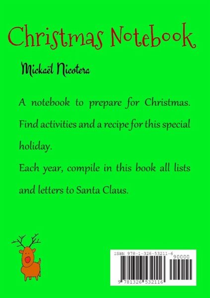 A notebook to prepare for Christmas. Find activities and a recipe for this special holiday. Each year, compile in this book all lists and letters to Santa Claus.