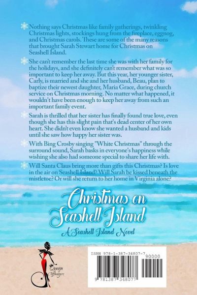 Nothing says Christmas like family gatherings, twinkling Christmas lights, stockings hung from the fireplace, eggnog, and Christmas carols. But this year, her sister Carly is married and she and her husband, Beau, plan to baptize their newest daughter, Maria Grace, during church service on Christmas morning. No matter what happened, it wouldn't have been enough to keep her away from such an important family event. Sarah is thrilled that her sister has finally found true love, even though she has this slight pain that's dead center of her own heart. She didn't even know she wanted a husband and kids until she saw how happy her sister was. With Bing Crosby singing "White Christmas" through the surround sound, Sarah basks in everyone's happiness while wishing she also had someone special to share her life with. Will Santa Claus bring more than gifts this Christmas? Is love in the air on Seashell Island? Will Sarah be kissed beneath the mistletoe? Or does she return to her home in Virginia alone?
