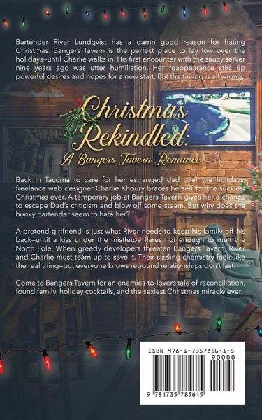 Bartender River Lundqvist has a damn good reason for hating Christmas. Bangers Tavern is the perfect place to lay low over the holidays-until Charlie walks in. His first encounter with the saucy server nine years ago was utter humiliation. Her reappearance stirs up powerful desires and hopes for a new start. But the timing is all wrong. Back in Tacoma to care for her estranged dad over the holidays, freelance web designer Charlie Khoury braces herself for the suckiest Christmas ever. A temporary job at Bangers Tavern gives her a chance to escape Dad's criticism and blow off some steam. But why does the hunky bartender seem to hate her? A pretend girlfriend is just what River needs to keep his family off his back-until a kiss under the mistletoe flares hot enough to melt the North Pole. When greedy developers threaten Bangers Tavern, River and Charlie must team up to save it. Their sizzling chemistry feels like the real thing-but everyone knows rebound relationships don't last. Come to Bangers Tavern for an enemies-to-lovers tale of reconciliation, found family, holiday cocktails, and the sexiest Christmas miracle ever.