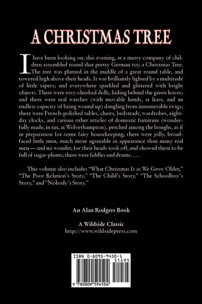 A Christmas Tree I have been looking on, this evening, at a merry company of children assembled round that pretty German toy, a Christmas Tree. The tree was planted in the middle of a great round table and towered high above their heads. It was brilliantly lighted by a multitude of little tapers; and everywhere sparkled and glittered with bright objects. There were rosy-cheeked dolls, hiding behind the green leaves; and there were real watches (with movable hands, at least, and an endless capacity of being wound up) dangling from innumerable twigs; there were French-polished tables, chairs, bedsteads, wardrobes, eight-day clocks and various other articles of domestic furniture (wonderfully made, in tin, at Wolverhampton), perched among the boughs, as if in preparation for some fairy housekeeping; there were jolly, broad-faced little men, much more agreeable in appearance than many real men -- and no wonder, for their heads took off, and showed them to be full of sugar-plums; there were fiddles and drums. . . .