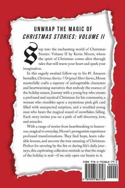 Unwrap the Magic of Christmas Stories: Volume II Step into the enchanting world of Christmas Stories: Volume II by Kevin Moore, where the spirit of Christmas comes alive through tales that will warm your heart and spark your imagination. In this eagerly awaited follow-up to his #1 Amazon bestseller, Christmas Stories: 7 Original Short Stories, Moore masterfully crafts a tapestry of unforgettable characters and heartwarming narratives that embody the essence of the holiday season. Journey with a young boy who creates a profound and mystical Christmas for his community, a woman who stumbles upon a mysterious pink gift card filled with unexpected surprises, and a troubled young man who hears the magical sound of snowflakes falling. Each story invites you on a path of self-discovery, love, and miracles. With a range of stories from heartbreaking to humorous, magical to everyday, Moore's protagonists experience profound transformations. They find hope, learn valuable lessons, and uncover the true meaning of Christmas. Perfect for savoring by the fire or during life's daily journeys, this captivating collection reminds us that the magic of the holiday is real-if we only open our hearts to it.