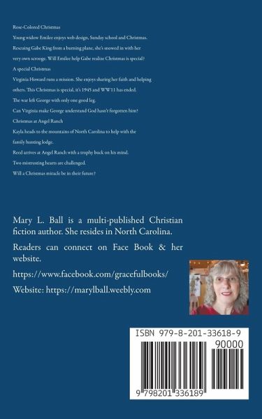 Christmas Surprise- Three formerly individual novellas. Rose-Colored Christmas Young widow Emilee Arnold enjoys web design, teaching Sunday school and Christmas. She rescues Gabe King from a burning plane and is snowed in with her very own scrooge. Will Emilee help Gabe realize Christmas is special? A special Christmas Virginia Howard runs Hand-n-Hand mission. She enjoys sharing her faith and helping those less fortunate. This year Christmas is special, it's 1945 and WW11 has ended. The war left George Smith with only one good leg and a crushed dream. Can Virginia help George understand God hasn't forgotten him? Christmas at Angel Ranch With Christmas coming and no job Kayla heads to the mountains of North Carolina, to help with the family hunting lodge. Reed Jessup arrives at Angel Ranch with a trophy buck on his mind. Two mistrusting hearts are challenged. Can love prevail, or will it take a Christmas miracle?