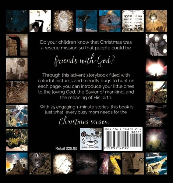 Share with your children the whole story of the God who loves! Do your children know that Christmas was a rescue mission so that people could be friends with God? Through this Advent storybook, you can introduce your little ones to the loving God, the Savior of mankind, and the meaning of His birth. Every day features a 1-minute, easy-to-read-aloud story, with colorful, fascinating artwork, and a friendly little bug to hunt and find somewhere on the page. The 25 engaging stories spanning the entire Bible will make sharing the true meaning of Christmas with your little ones a simple and fun task. This Advent experience has children eagerly anticipating each new day's story asking things like, "Is today the day? Is this the day that the man comes to beat the snake?" The final day when the story reveals that it's God Himself who comes, one little boy looked up with a grin and said, "Figured it would probably be Him. Since He loves us so much, I mean." The author tells how the book came to be. "One year I set up an Advent calendar of Christmas activities, and started looking for an Advent book to share with my little charges the greatest love story of all eternity. "Except, I couldn't find just the right one. There were lots of books that were beautiful and interesting and would have been amazing, except they were all missing some element that I desperately desired. I needed a book that started at the beginning, that told the story from the moment God existed and nothing else did. I needed a book that was short and to-the-point, because these rambunctious boys were not going to stay focused for more than a few minutes. I needed a book that told the whole story- how Jesus was promised from the garden and everything we learn after that just pointed to Him. "So, what does any writer-of-a-woman do? I grabbed a composition notebook and pencil and a box of crayons, and made my own." Share with your little loved ones the Christmas story of the One who created Love itself.