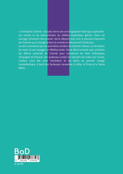 « Christophe Colomb » de Jules Verne est une biographie historique captivante qui retrace la vie extraordinaire du célèbre explorateur génois. Dans cet ouvrage richement documenté, Verne dépeint avec brio le parcours fascinant de l'homme qui a changé la face du monde en découvrant l'Amérique. Le récit commence par les premières années de Colomb à Gênes, sa formation de marin et ses voyages en Méditerranée. Verne décrit ensuite avec précision les efforts acharnés de Colomb pour convaincre les Rois Catholiques d'Espagne de financer son audacieux projet de rejoindre les Indes par l'ouest. L'auteur nous fait vivre l'excitation et les périls du premier voyage transatlantique, à bord des fameuses caravelles, la Niña, la Pinta et la Santa María. Avec son style caractéristique, mêlant rigueur historique et narration palpitante, Verne nous plonge dans l'atmosphère du XVe siècle, époque charnière entre le Moyen Âge et la Renaissance. Il explore les motivations de Colomb, ses convictions scientifiques et religieuses, ainsi que les défis techniques et humains auxquels il a dû faire face. Ce livre s'inscrit parfaitement dans les catégories « Biographies historiques », « Récits d'exploration » et « Histoire des découvertes ». Verne y déploie tout son talent de conteur pour offrir une perspective équilibrée sur cette figure controversée de l'histoire. L'ouvrage ne se contente pas de relater les succès de Colomb. Il aborde également les aspects plus sombres de son héritage, notamment les débuts de la colonisation et ses conséquences sur les populations autochtones du Nouveau Monde. Verne offre ainsi une réflexion nuancée sur l'impact global des voyages de Colomb sur l'histoire mondiale.