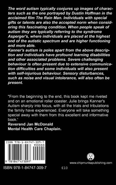 Key Themes: Kanner's autism, carer's story "From beggining to end this book kept me riveted and on an emotional rollercoaster. Julie brings Kanner's Autism sharply into focus, with all the trials and tribulations the family have experienced. Everyone will take something special away with them from thie excellent and informative book." - Rev. Jan McDonald, Mental Health Care Chaplain Description Christopher's Story was written for my son in the hope of raising awareness of (Kanner's) autism and severe chellenging bevahiour. It is primarily a story of love and of a determination to remain together as a family, when the only alternative offered was residential care. The book details our fight to secure schooling, accommodation and social services support - the later issue has yet to be resolved. I would truly love others to look beyond the disability and see Christopher for who he really is. I hope this book goes some way towards making this a reality. Julie Telfer Book Extract In September 1991 Christopher had reached the appropriate age for attending nursery, but it was during this time that we suddenly discovered that his complex needs would seriously impact upon the services which were readily available to other children. Nursery placements in the area were typically well sought after but as children with speech, social and learning difficulties are generally given priority, we were not concerned about securing a placement. The application form had been completed and returned and we were just waiting to discover if he would receive morning or afternoon provision. An educational psychologist had asked to visit us at home but as other professionals often made the same request, we did not suspect that the visit was in any way connected to the nursery placement. However, it was not long into the visit before we were being informed that Christopher could not attend nursery as the Department had no resources available to fund the 1-1 assistant which he needed. The psychologist went on to stress that given the extent of Christopher's learning delay and social development, it might be more beneficial for us to delay nursery until the following year in any event. At which time the financial situation could prove to be different and he could simply start a year later than usual. The situation was not ideal but we appeared to have no choice other than to accept it. After all, if there was no money available to fund an assistant, it would not be a safe environment for Christopher or the other children. It was disappointing to have spent the past few months preparing for this milestone, only for it to be delayed in this way and so we considered what other opportunities were available in the meantime.We were informed of a playgroup which was only a few miles from where we lived and decided to introduce Christopher. It was a friendly group and the children who attended were all pre-school age, with a variety of disabilities. The room which had been allocated was used as a typical play group on other days of the week, but on Wednesday mornings it was used by families such as ours. The room itself was enormous and whilst a small section housed a few tables and chairs from which the parents could watch the children playing, the remainder was filled with a lovely selection of toys, activities, bikes and other sit-and-ride vehicles.