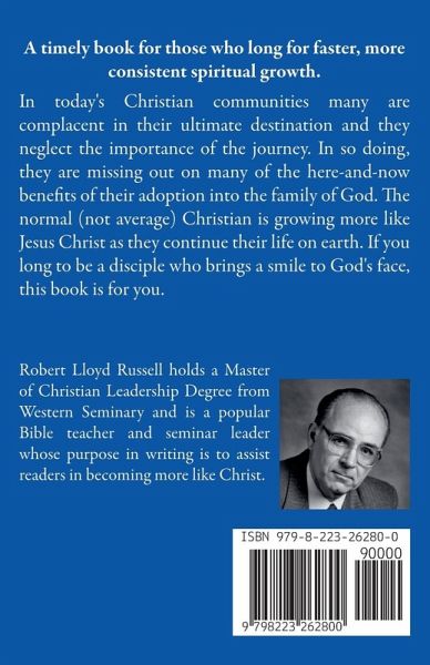 A timely book for those who long for faster, more consistent spiritual growth. In today's Christian communities many are complacent in their ultimate destination and they neglect the importance of the journey. In so doing, they are missing out on many of the here and now benefits of their adoption into the family of God. The normal (not average) Christian is growing more like Jesus Christ as they continue their life on earth. If you long to be a disciple who brings a smile to God's face, this book is for you. Common to all the books in the Christian Growth Series ... Intensely practical for today's Christian Enjoyable and entertaining Innovative application of Scripture passages Profound truth in simple language through analogy Impactful for all levels of spiritual maturity Short, easy-to-read sections - ideal reading for the person "on the go" Described as "Inspirational Doctrine" and "Living Theology" "Think and Grow" questions for group study or personal contemplation