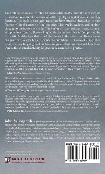 The Catholic Church--like other churches--has created institutions to support its spiritual mission. The exercise of authority plays a central role in how they function. The truth is that ugly accretions have attached themselves to that ""authority"" in the course of the centuries. Like weeds, scallops, and rubbish clinging to the bottom of a ship. Think of unchristian cultural views, customs, and practices from the Roman Empire, the barbarian tribes in Europe and the feudalistic Middle Ages that nailed themselves to the ministries. These cancerous growths have even been enshrined in church laws. . . . This booklet identifies what is wrong by going back to Jesus' original intentions. Find out how Jesus wanted the spiritual authority he gives to be exercised in practice.