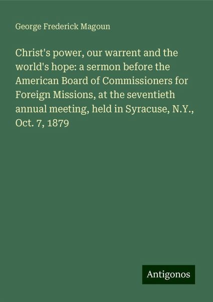 Christ's power, our warrent and the world's hope: a sermon before the American Board of Commissioners for Foreign Missions, at the seventieth annual meeting, held in Syracuse, N.Y., Oct. 7, 1879 - Magoun, George Frederick
