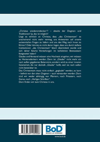 "Christus wiederentdecken"? - abseits der Dogmen und Traditionen?Ja, das ist möglich!Viele Menschen aus dem westlichen "christlichen" Kulturraum wenden sich von der Religion ab und suchen ihr Heil in der erfolgreichen Bewältigung des äußeren Lebens: Beruf, Erfolg, Wohlstand, Familie. Oder sie suchen ihr Heil in exotischen Lehren, im Keltentum, im Schamanentum, bei mexikanischen Zauberern, oder - wie es meistens der Fall ist - bei den östlichen Religionen, im Taoismus, Hinduismus oder Buddhismus. Liegt es wirklich an Christus, dass "das Christentum" es anscheinend nicht mehr vermag, uns Antworten auf unsere existentiellen Fragen zu liefern und uns den Weg nach Innen zu führen?Oder könnte es nicht daran liegen, dass uns durch äußere Institutionen "das Christentum" falsch übermittelt wurde und sich daher falsche Vorstellungen im kollektiven Bewusstsein festgesetzt haben?Es muss unterschieden werden zwischen den Irrwegen eines traditionellen Christentums und dem, was Christus selber lehrt und für uns sein kann. Die zentrale Bedeutung des "Meisters aller Meister" soll verständlich gemacht werden, abseits kirchlicher Erklärungsmuster. Dadurch kann der Westen wieder zum Schatz der eigenen Überlieferung finden, durch den er, anstatt auf geistigem Gebiet immer nur etwas von ihnen zu erwarten, Menschen aus anderen Kulturkreisen auch etwas geben kann.Gleichzeitig soll auf die Irrwege in anderen Religionen hingewiesen werden, ohne sie zu verteufeln. Alle Glaubenswege werden respektiert. Doch die naive Gläubigkeit, die in Bezug auf die eigene religiöse Überlieferung als irreführend erkannt wird, ist es natürlich auch in Bezug auf andere religiöse Überlieferungen und spirituelle Wege.Glaube und Verstand müssen eine Hochzeit eingehen, wir müssen zu Herzensdenkern werden. Dann ist "Glaube" nicht mehr ein nach außen gegebenes Bekenntnis, sondern wird zu einer inneren Gewissheit, die nur deshalb "Glaube" heißt, weil sie nach außen nicht beweisbar ist.Das Christentum muss nicht einfach "geglaubt" werden, es kann - befreit von den alten Dogmen - auch verstanden werden. Dann sind wir weder abhängig von Pfarrern, noch Priestern, noch Gurus, noch "Heiligen Schriften". Dann finden wir zum Christus in uns.
