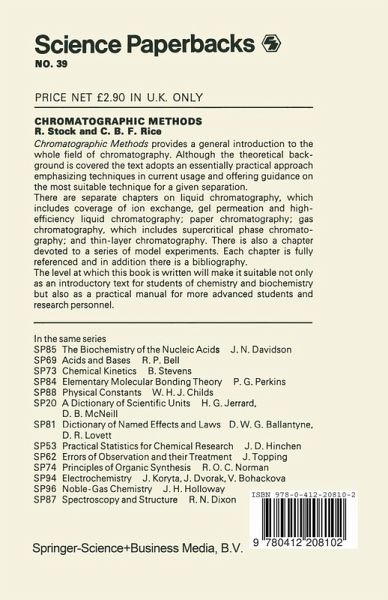 Classification of chromatographic methods Chromatography is the name given to a particular family of separation techniques of great effectiveness. The original method was described in 1903 by Tswett, who used it for the separation of coloured substances, and the name chromatog raphy stems from this. However, the limitation to coloured compounds never really obtained, and most chromatographic separations are nowadays performed on mixtures of colourless substances, including gases. Like fractional distillation, chromatography relies on the relative movement of two phases, but in chromatography one is fixed and is known as the stationary phase; the other is known as the mobile phase. Chromatographic methods may be classified first according to the nature of the mobile phase and, second, according to the nature of the stationary phase. The mobile phase may be a liquid or a gas, and the stationary phase may be a solid or a liquid. There are thus four main sub-divisions of the chromatographic process, as set out in Table 1.1. The system is called adsorption chromatography if the stationary phase is a solid, and partition chromatography if it is a liquid.
