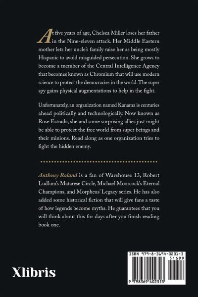 At five years of age, Chelsea Miller loses her father in the Nine-eleven attack. Her Middle Eastern mother lets her uncle's family raise her as being mostly Hispanic to avoid misguided persecution. She grows to become a member of the Central Intelligence Agency that becomes known as Chromium that will use modern science to protect the democracies in the world. The super spy gains physical augmentations to help in the fight. Unfortunately, an organization named Kanama is centuries ahead politically and technologically. Now known as Rose Estrada, she and some surprising allies just might be able to protect the free world from super beings and their minions. Read along as one organization tries to fight the hidden enemy.