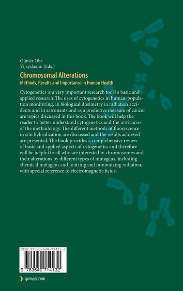 Cytogenetics is a very important research tool in basic and applied research. The uses of cytogenetics in human-population monitoring, in biological dosimetry in radiation accidents and in astronauts and as a predictive measure of cancer are topics discussed in this book. The book will help the reader to better understand cytogenetics and the intricacies of the methodology. The different methods of fluorescence in situ hybridization are discussed and the results achieved are presented. The book provides a comprehensive review of basic and applied aspects of cytogenetics and therefore will be of interest to all who are interested in chromosomes and their alterations by different types of mutagens, including chemical mutagens and ionizing and nonionizing radiation, with special reference to electromagnetic fields.