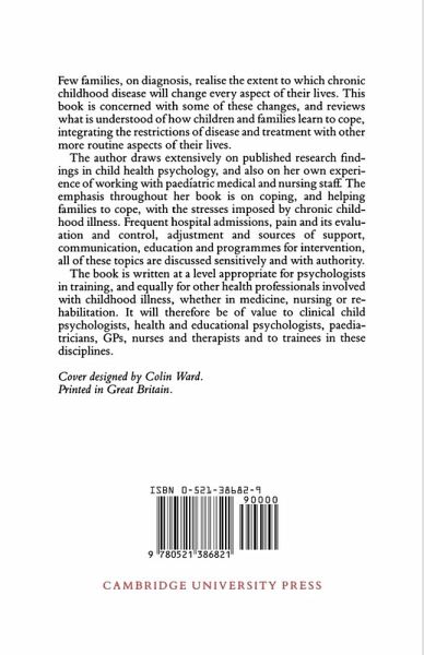 The author draws extensively on the published research findings in child health psychology, and also on her own experience of working with pediatric medical and nursing staff. The emphasis throughout her book is on coping, and helping families to cope, with the stresses imposed by chronic childhood illness. Frequent hospital admissions, pain and its evaluation and control, adjustment and sources of support, communication, education and programs for intervention, all of these topics are discussed sensitively and with authority.