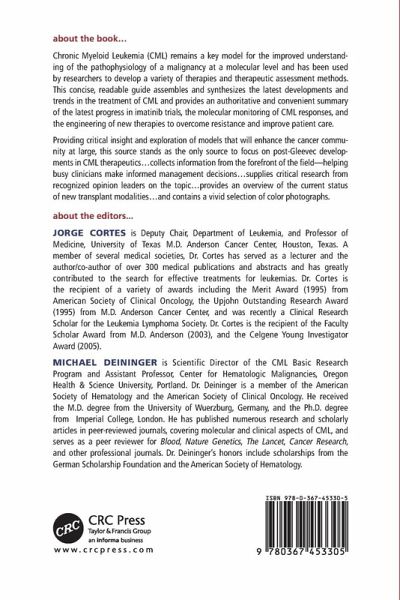 Chronic Myeloid Leukemia (CML) remains a key model for the improved understanding of the pathophysiology of a malignancy at a molecular level and has been used by researchers to develop a variety of therapies and therapeutic assessment methods. This concise, readable guide assembles and synthesizes the latest developments and tr
