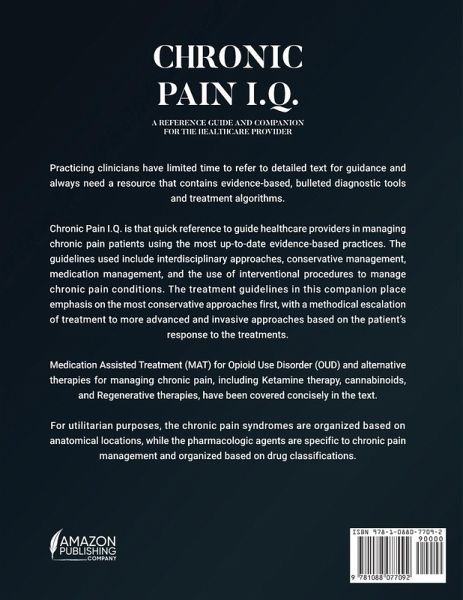 Practicing clinicians have limited time to refer to detailed text for guidance and are malways in need of a resource they can reference to quickly which contains evidence based, bulleted diagnostic tools and treatment algorithms Chronic Pain I.Q. is that quick reference to guide the Healthcare Provider in the care and management of the chronic pain patient using the most up to date evidence-based practices. The guidelines used include interdisciplinary approaches, conservative management, medication management and the use of interventional procedures to manage chronic pain conditions. The treatment guidelines in this companion place an emphasis on the most conservative approaches first with a methodical escalation of treatment to more advanced and invasive approaches based on the patient's response to the treatments. Medication Assisted Treatment (MAT) for Opioid Use Disorder (OUD) and Alternative therapies for managing chronic pain including Ketamine therapy, Cannabinoids and Regenerative therapies have been covered in concise detail in the text. For utilitarian purposes the chronic pain syndromes are organized based on the anatomical locations while the pharmacologic agents are specific to chronic pain management and organized based on drug classifications