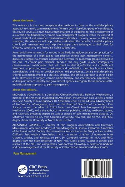 This reference is the most comprehensive textbook to date on the multidisciplinary approach to chronic pain management. Written by an illustrious group of contributors, this source serves as a must-have armamentarium of guidelines for the development of a successful multidisciplinary chronic pain management program within the context of current me