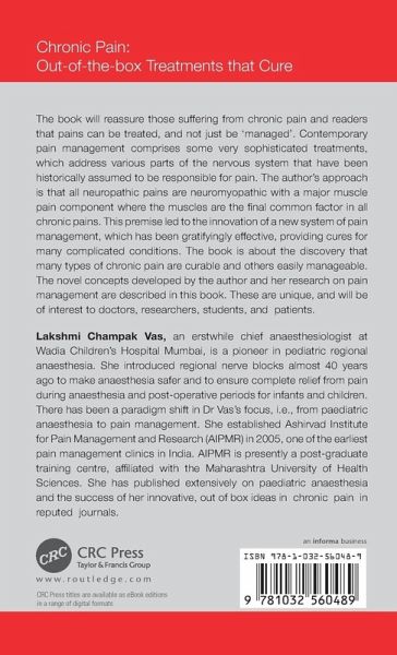 The book will reassure those suffering from chronic pain and readers that pains can be treated, and not just be 'managed'. Contemporary pain management comprises some very sophisticated treatments, which address various parts of the nervous system that have been historically assumed to be responsible for pain. The author's approach is that all neuropathic pains are neuromyopathic with a major muscle pain component where the muscles are the final common factor in all chronic pains. This premise led to the innovation of a new system of pain management, which has been gratifyingly effective, providing cures for many complicated conditions. The book is about the discovery that many types of chronic pain are curable and others easily manageable. The novel concepts developed by the author and her research on pain management are described in this book. These are unique, and will be of interest to doctors, researchers, students, and patients.