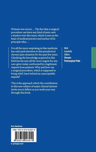 It is all the more surprising in that medicine has only paid attention to this paradoxical chronic pain situation for the past few years. Clarifying the knowledge acquired in this field has become all the more urgent for any care-giver today confronted by a legitimate request from patients: Why and how can a surgical procedure, which is supposed to bring relief, leave behind an unacceptable sequela?
