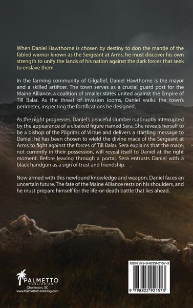 When Daniel Hawthorne is chosen by destiny to dawn the mantle of the fabled warrior known as the Sergeant at Arms, he must discover his own strength to unify the lands of his nation against dark forces that seek to enslave them. In the farming community of Gilgafief, Daniel Hawthorne is the mayor and a skilled artificer. The town serves as a crucial guard post for the Maine Alliance, a coalition of smaller states united against the Empire of Till Balar. As the threat of invasion looms, Daniel walks the town's perimeter, inspecting the fortifications he designed. As the night progresses, Daniel's peaceful slumber is abruptly interrupted by the appearance of a cloaked figure named Sera. She reveals herself to be a bishop of the Pilgrims of Virtue and delivers a startling message to Daniel: he has been chosen to wield the divine mace of the Sergeant at Arms to fight against the forces of Till Balar. Sera explains that the mace, not currently in their possession, will reveal itself to Daniel at the right moment. Before leaving through a portal, Sera entrusts Daniel with a black handgun as a sign of trust and friendship. Now armed with this newfound knowledge and weapon, Daniel faces an uncertain future. The fate of the Maine Alliance rests on his shoulders, and he must prepare himself for the life-or-death battle that lies ahead.
