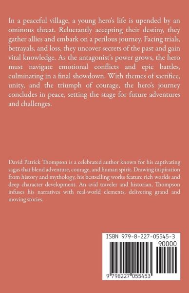 In a peaceful village, a young hero's life is upended by an ominous threat. Reluctantly accepting their destiny, they gather allies and embark on a perilous journey. Facing trials, betrayals, and loss, they uncover secrets of the past and gain vital knowledge. As the antagonist's power grows, the hero must navigate emotional conflicts and epic battles, culminating in a final showdown. With themes of sacrifice, unity, and the triumph of courage, the hero's journey concludes in peace, setting the stage for future adventures and challenges.