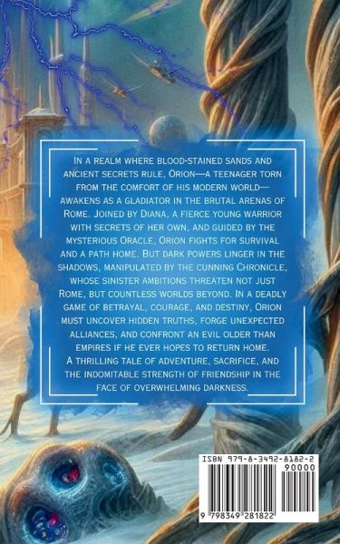 A thrilling tale of adventure, sacrifice, and the indomitable strength of friendship in the face of overwhelming darkness. In a realm where blood-stained sands and ancient secrets rule, Orion-a teenager torn from the comfort of his modern world-awakens as a gladiator in the brutal arenas of Rome. Joined by Diana, a fierce young warrior with secrets of her own, and guided by the mysterious Oracle, Orion fights for survival and a path home. But dark powers linger in the shadows, manipulated by the cunning Chronicle, whose sinister ambitions threaten not just Rome, but countless worlds beyond. In a deadly game of betrayal, courage, and destiny, Orion must uncover hidden truths, forge unexpected alliances, and confront an evil older than empires themselves if he ever hopes to return home. What happens when destiny chooses warriors from another world?