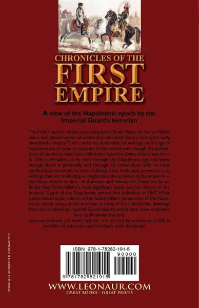 A view of the Napoleonic epoch by the Imperial Guard's historian The French author of this interesting book, Emile Marco de Sainte-Hilaire was a well known writer of novels and anecdotal history during the early nineteenth century. There can be no doubt that his writings on the age of Napoleon are of value to students of the period, even though the authenticity of his words have been called into question. Sainte-Hilaire was born in 1796 in Versailles, so he lived through the Napoleonic age and knew enough about it personally and through his connections with its most significant personalities to add credibility, if not irrefutable provenance, to writings that are fascinating as insights into the activities of the emperor-and those closest to him-in domestic and military life. There can be no doubt that Sainte-Hilaire's most significant work was his history of the Imperial Guard of the Napoleonic period first published in 1847. What makes this Leonaur edition of the Sainte-Hilaire perspective of the Napoleonic epoch unique is the inclusion of many of the uniform line drawings from his outstanding Imperial Guard history which have been employed here to illuminate the text. Leonaur editions are newly typeset and are not facsimiles; each title is available in softcover and hardback with dustjacket.