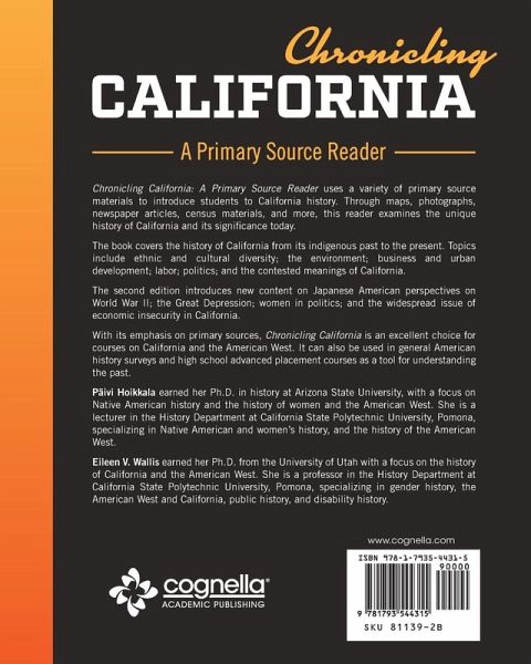 Chronicling California: A Primary Source Reader uses a variety of primary source materials to introduce students to California history. Through maps, photographs, newspaper articles, census materials, and more, this reader examines the unique history of California and its significance today. The book covers the history of California from its Indigenous past to the present. Topics include ethnic and cultural diversity; the environment; business and urban development; labor; politics; and the contested meanings of California. The second edition introduces new content on Japanese American perspectives on World War II; the Great Depression; women in politics; and the widespread issue of economic insecurity in California. With its emphasis on primary sources, Chronicling California is an excellent choice for courses on California and the American West. It can also be used in general American history surveys and high school advanced placement courses as a tool for understand the past.