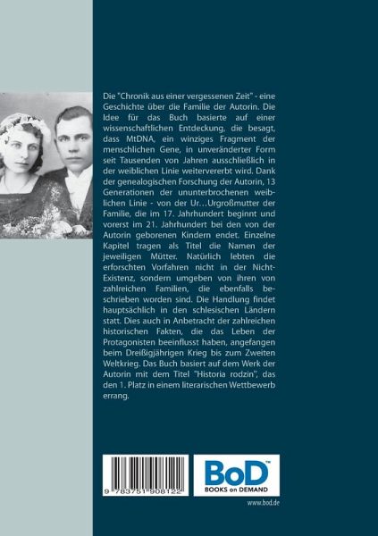 Die Chronik aus einer vergessenen Zeit ist eine Geschichte über die Familie der Autorin. Die Idee des Buches basierte auf einer wissenschaftlichen Entdeckung, die besagt, dass MtDNA (Mitochondrien), ein winziges Fragment der menschlichen Gene in unveränderter Form seit Tausenden von Jahren ausschließlich in der weiblichen Linie weitervererbt wird.Über unzählige Generationen hinweg haben die nacheinander folgenden Mütter ihren Kindern eine Art Vermächtnis gegenüber der sich ständig ändernden Welt weitergegeben. Die Jungen erhalten auch MtDNA, geben sie jedoch nicht weiter.Dank der genealogischen Forschung der Autorin, 13 Generationen der ununterbrochenen weiblichen Linie - von der Urmutter der Familie, die im 17. Jahrhundert beginnt und vorerst im 21. Jahrhundert bei den von der Autorin geborenen Kindern endet. Einzelne Kapitel tragen als Titel die Namen der jeweiligen Mütter, ein Abenteuer. Natürlich lebten die erforschten Vorfahren nicht in der Nichtexistenz, sondern umgeben vonihren von zahlreichen Familien, die ebenfalls beschrieben worden sind. Die Handlung findet hauptsächlich in den schlesischen Ländern statt. Dies auch in Anbetracht der zahlreichen historischen Fakten, die das Leben der Protagonisten beeinflusst haben, angefangen beim Dreißigjährigen Krieg bis zum Zweiten Weltkrieg.